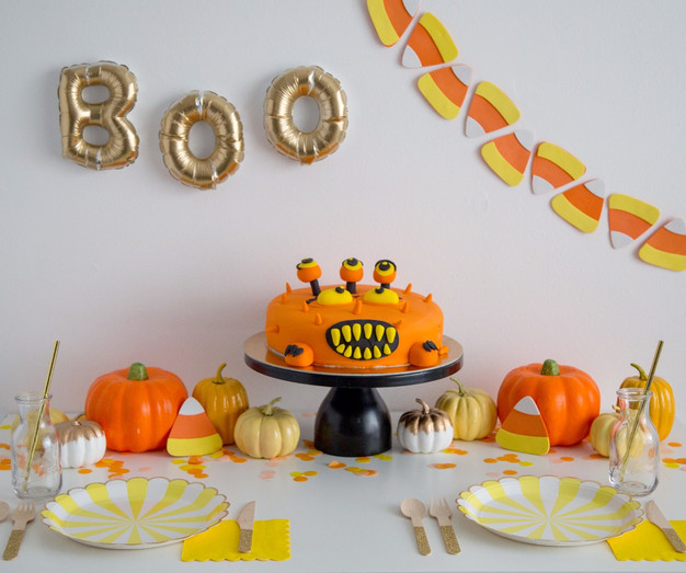 I've always loved candy corn. Let me rephrase that, I've always loved the LOOK of candy corn!! The colors are fun and bright and a perfect color scheme for a fun Halloween party. As I was planning this little set up, I came across the company Cakest in a mom group I'm part of. When I saw the concept of what they offered, I couldn't believe how perfect it was for moms! You can select from a range of different DIY cake kits that fit your needs, and when I found the monster kit, I knew it was perfect for my Candy corn inspired bash!